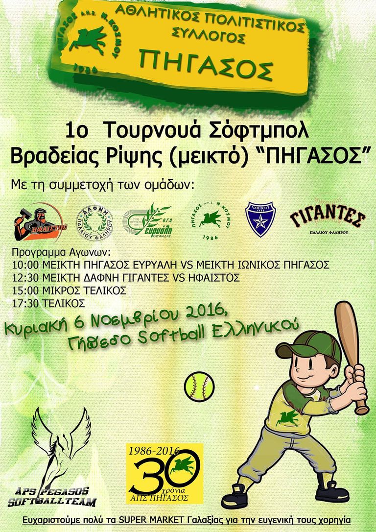 On Sunday November 6, the 1st “PIGASUS” Mixed Team Coed Slowpitch Tournament took place at the Helleniko Softball fields with great success.