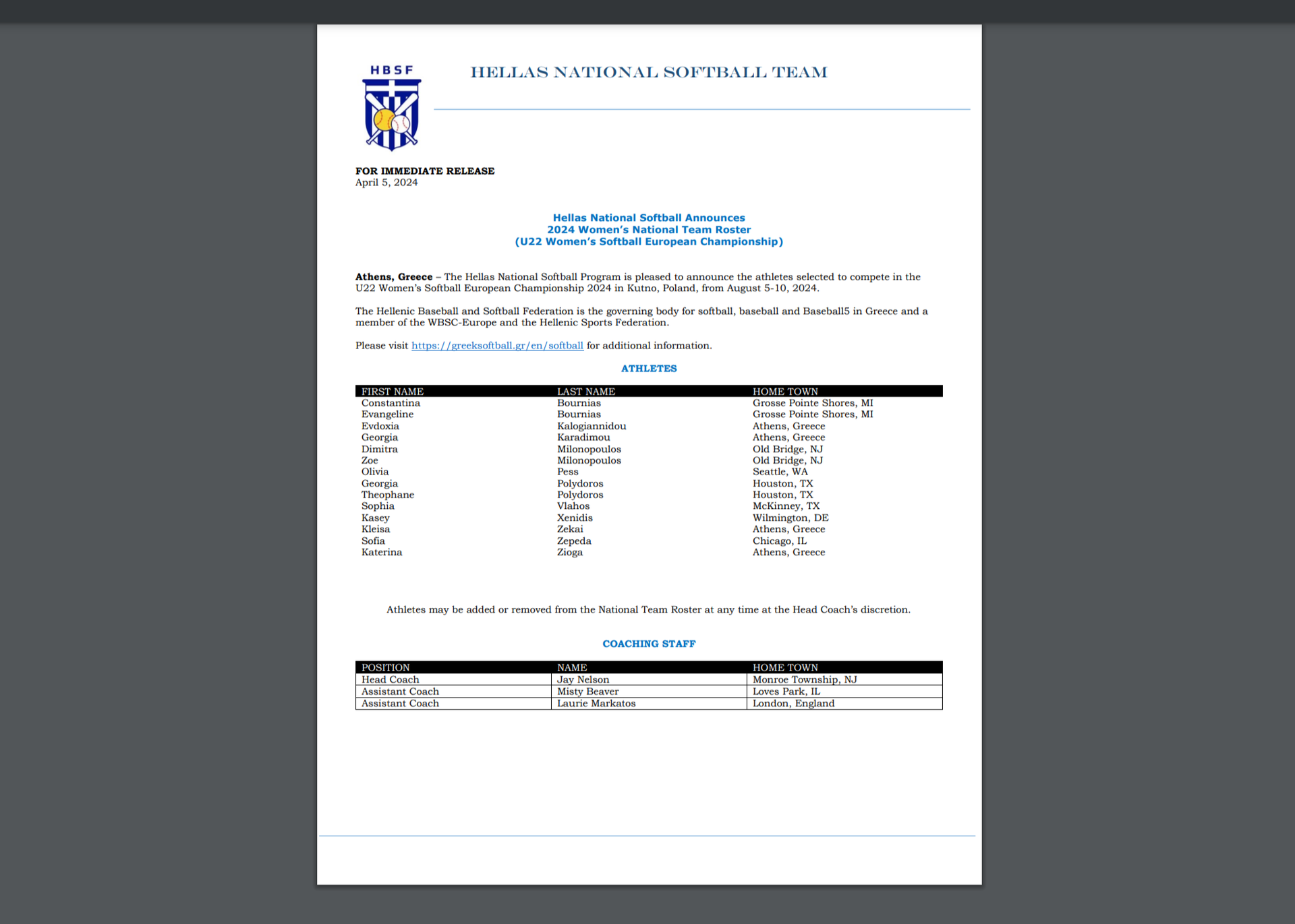 Σόφτμπολ Επιτροπή Πρόσληψη νέου παίκτη